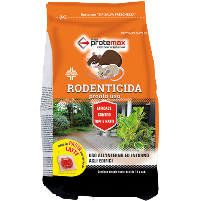 Caratteristiche: È un’esca rodenticida pronta all’uso in pasta. È ideale per il controllo d’infestazioni da topo domestico (Mus musculus) e ratto grigio (Rattus norvegicus). L’esca contiene Difenacoum, principio attivo anticoagulante di 2° generazione, è caratterizzato da una miscela ben bilanciata d’ingredienti di origine alimentare molto appetibili per le specie di roditori sopraindicate.